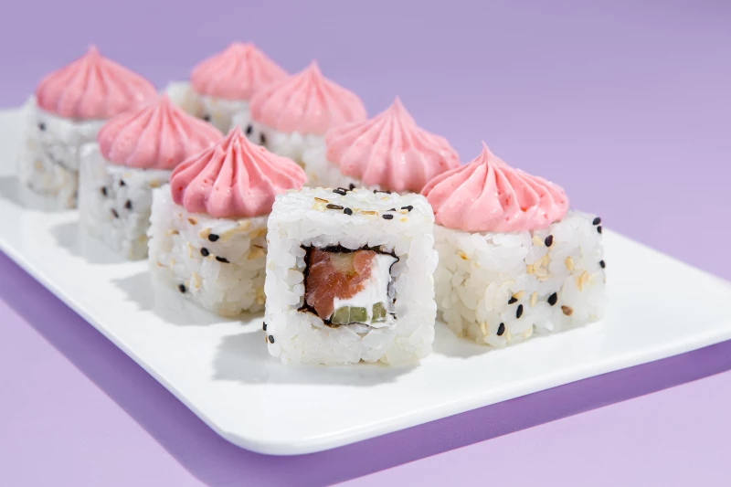 Ролл с лососем, сливочным сыром, огурцом и соусом лава (8 шт.)